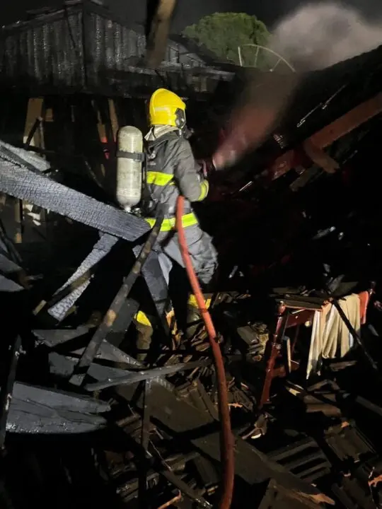 De acordo com o Corpo de Bombeiros, não havia moradores na residência no momento do incêndio, e o proprietário não foi localizado. As causas do fogo ainda são desconhecidas.