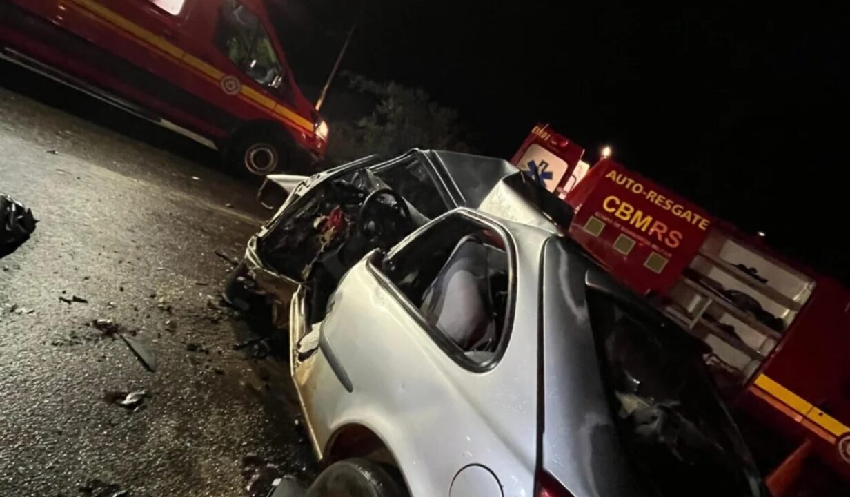 Uma jovem de 23 anos perdeu a vida em um grave acidente ocorrido na madrugada deste sábado (10), na BR-285, próximo à entrada de Muitos Capões, nos Campos de Cima da Serra. A vítima conduzia um carro que colidiu frontalmente com um ônibus de excursão internacional, que partira de Salta, na Argentina, com destino final em Balneário Camboriú (SC). O impacto foi tão forte que destruiu completamente o automóvel e causou sérios danos à parte frontal do coletivo.