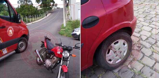 Por volta das 16h40 desta quinta-feira, 30 de janeiro, os Bombeiros Voluntários de Garibaldi foram acionados para atender uma colisão entre uma motocicleta e um veículo de passeio na Rua Ernesto Alves, esquina com a Rua 13 de Maio.