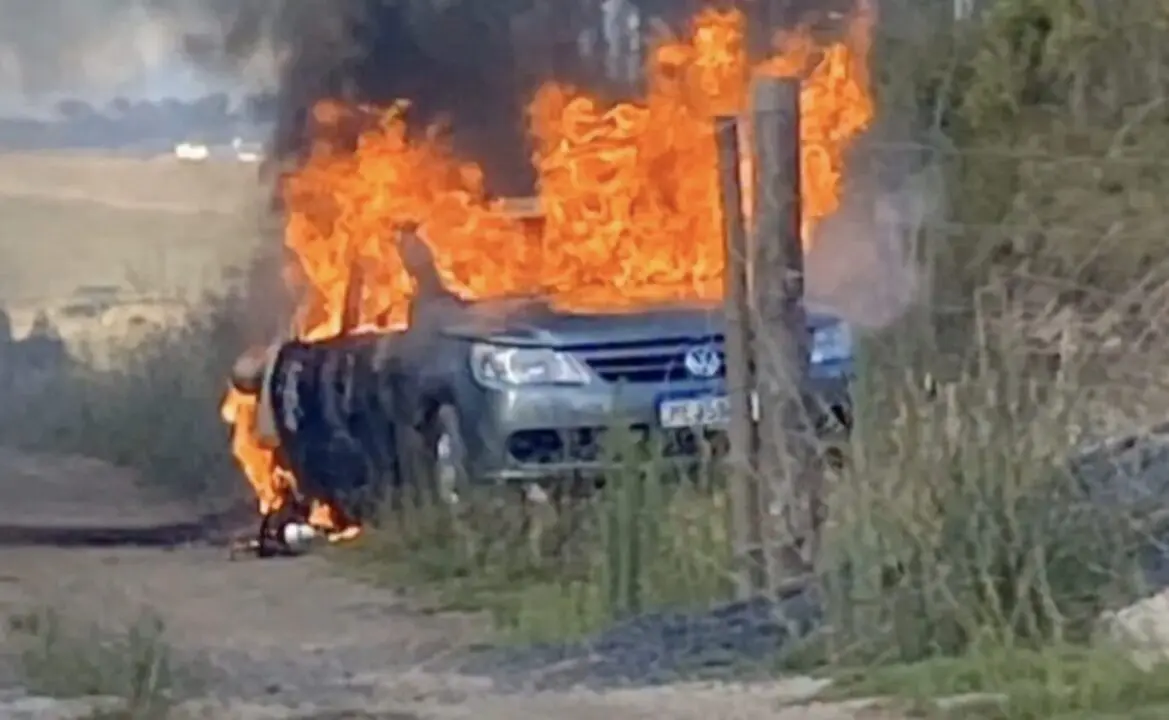 Criminosos invadem sítio e incendeiam veículo durante fuga em SC