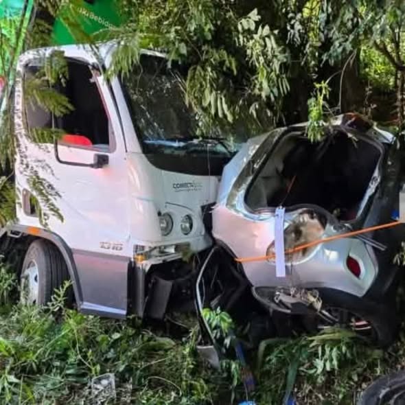 De acordo com as informações preliminares, o veículo de passeio teria invadido a via preferencial nas proximidades de uma curva, colidindo frontalmente com o caminhão.