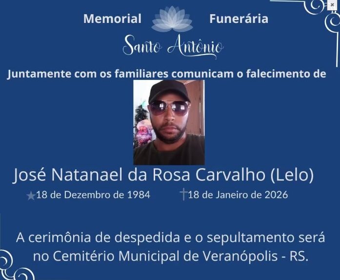 O corpo localizado na madrugada de domingo, 18 de janeiro, às margens da BR-470, em Veranópolis, foi identificado como José Natanael da Rosa Carvalho, de 41 anos. Conhecido popularmente como Lelo, o homem foi encontrado por volta das 2h, na altura do km 174 da rodovia. Equipes da Polícia Rodoviária Federal (PRF) e do Corpo de Bombeiros foram acionadas para atender a ocorrência e confirmaram o óbito ainda no local, que foi isolado para os trabalhos da perícia técnica.