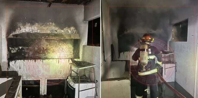 Ao chegarem ao local, os bombeiros encontraram fogo em um dos cômodos do prédio, realizando o combate e o rescaldo das chamas.