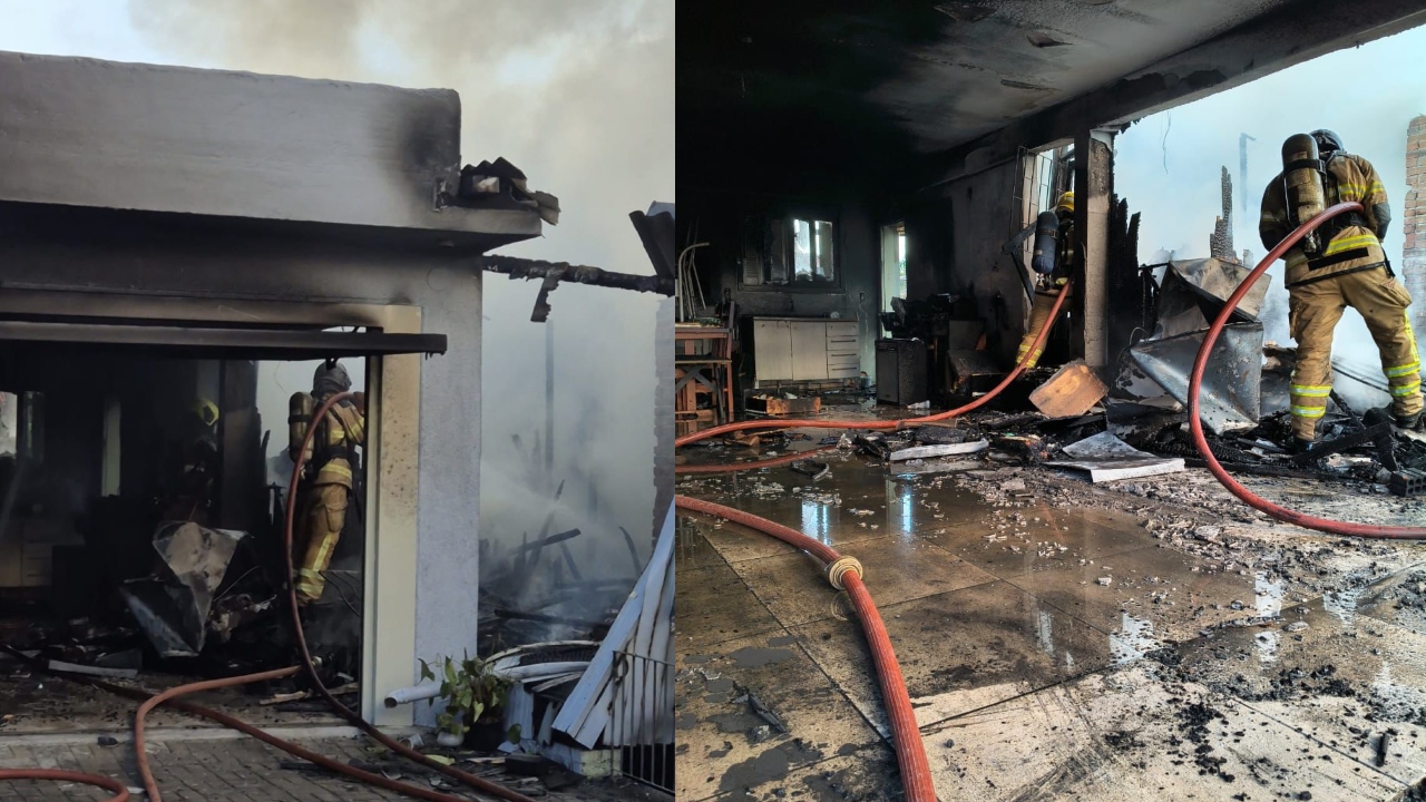 Fogo consumiu parcialmente casa de 120 metros quadrados na noite de terça-feira e mobilizou Corpo de Bombeiros, GCM e Brigada Militar