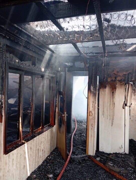 Casa 01 – Imóvel de construção mista e dois pavimentos, totalmente tomado pelo fogo, resultando em perda total. O morador relatou que o incêndio teve início em um quarto no andar superior e que, ao perceber as chamas, não foi possível realizar qualquer tentativa de controle.