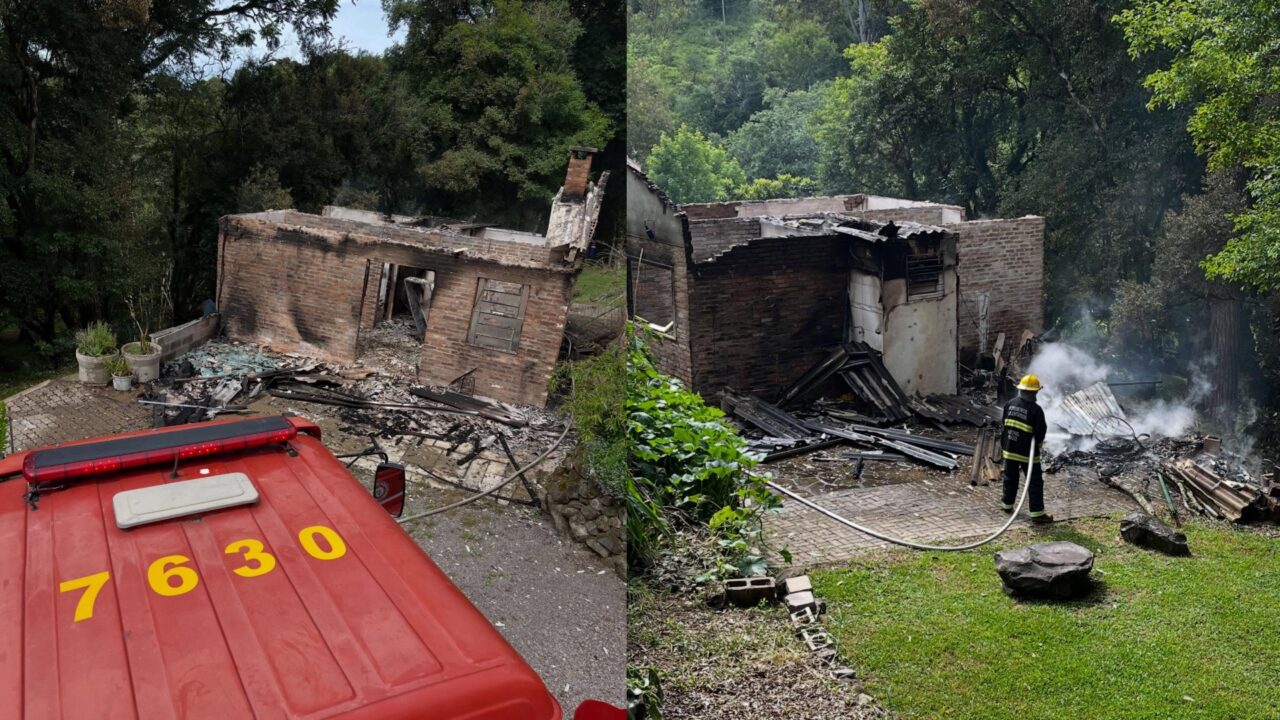 Uma casa foi completamente consumida pelas chamas no interior de Antônio Prado, mobilizando o Serviço Civil Auxiliar de Bombeiros e a Brigada Militar.