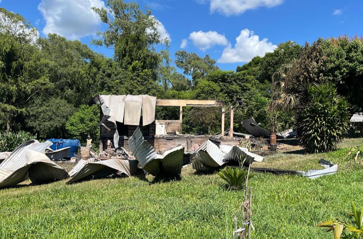 Na manhã desta quarta-feira, 14 de janeiro, uma residência ficou totalmente destruída após um incêndio na comunidade de Santa Luiza, localizada no interior de Carlos Barbosa.