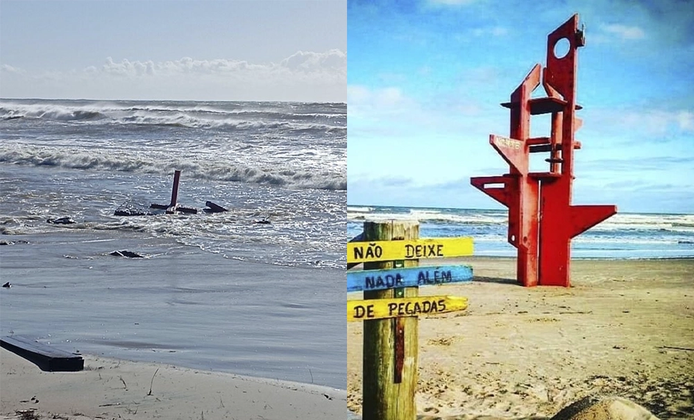 A madrugada deste domingo (4) foi marcada por forte ressaca no Litoral Norte gaúcho, que causou a destruição de um dos principais símbolos da praia de Atlântida Sul, em Osório. A Rosa dos Ventos, escultura de concreto localizada na faixa de areia, foi completamente arrancada pelo mar, restando apenas sua base. O monumento era não só um ponto de referência para moradores e visitantes, como também inspiração para ações ambientais na região.