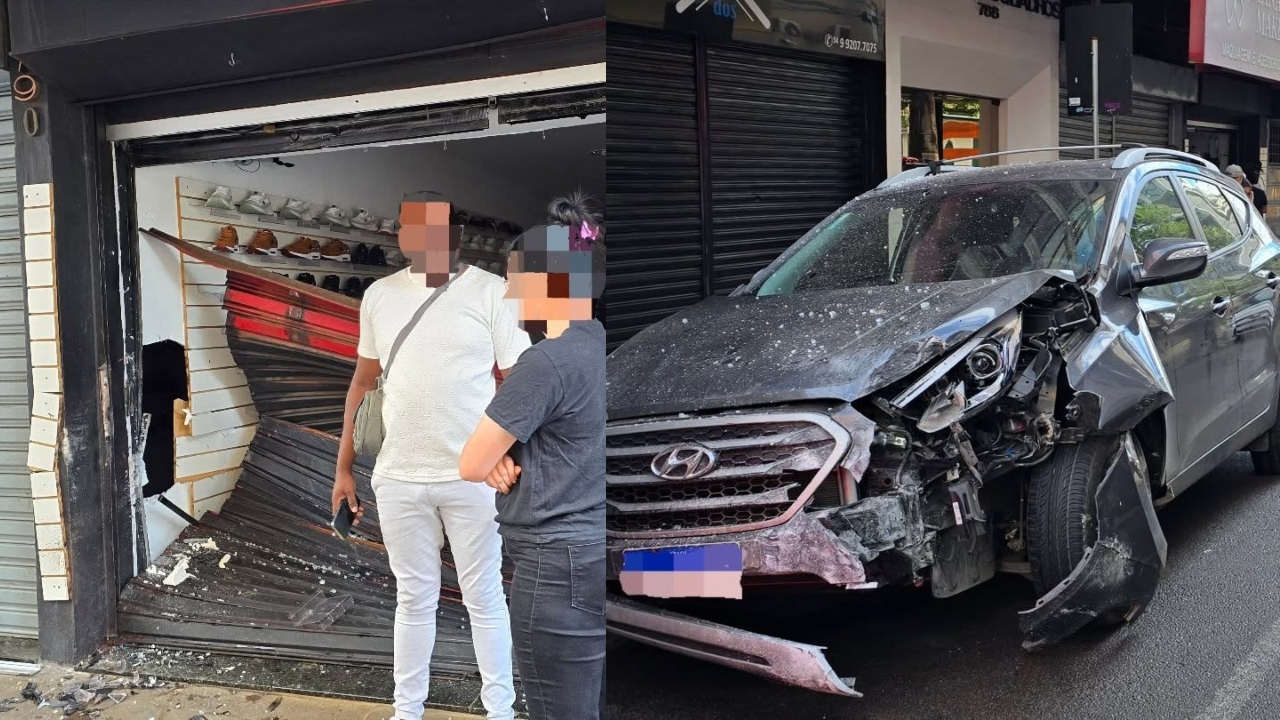 De acordo com informações apuradas pelo repórter Jeferson Vargas, a ix35 foi atingida na traseira por um Fiat Palio vermelho. Após o impacto, a motorista perdeu o controle da direção e atingiu o estabelecimento comercial. O condutor do Palio fugiu do local sem prestar socorro.