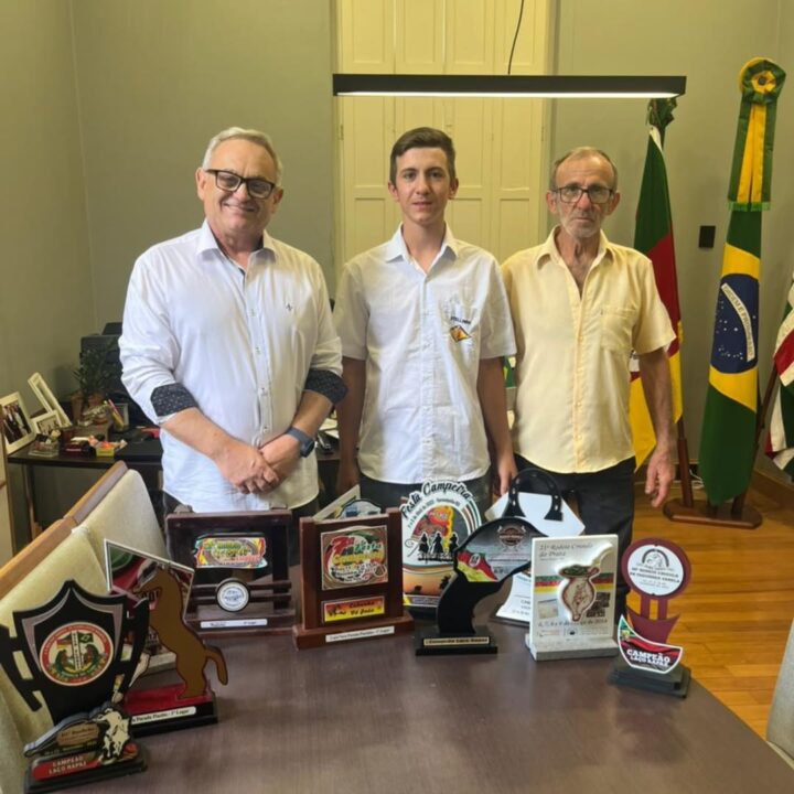 O prefeito Beto Carnevalli recebeu em seu gabinete o jovem Luis Otávio Stella, conhecido como “Stelinha”, em um encontro de reconhecimento pelas conquistas alcançadas no tiro de laço, representando com orgulho a tradição e a cultura gaúcha.