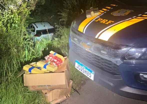 Após mais de 20 quilômetros de perseguição, o motorista perdeu o controle do veículo e caiu em uma ribanceira. Ele conseguiu sair do carro e fugiu em direção ao matagal. A PRF segue realizando buscas para localizar o suspeito.