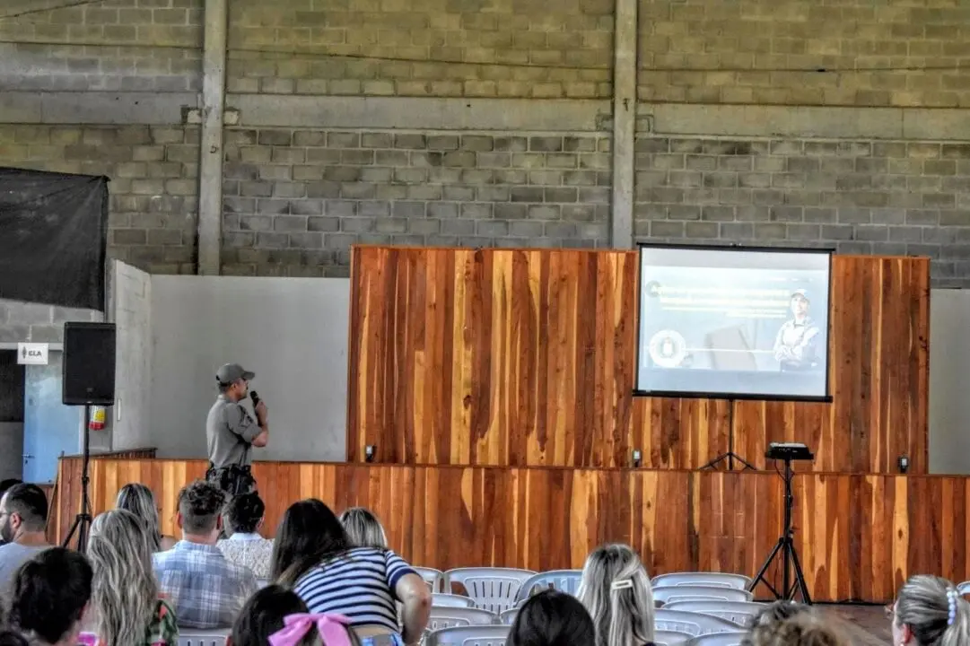 A Brigada Militar, por meio do soldado PM Severo, integrante da 3ª Companhia Independente de Polícia Militar e atuante em Nova Araçá, ministrou a palestra “Primeiro Interventor em Situações de Ataques em Ambiente Escolar”, voltada aos professores da rede municipal de ensino.