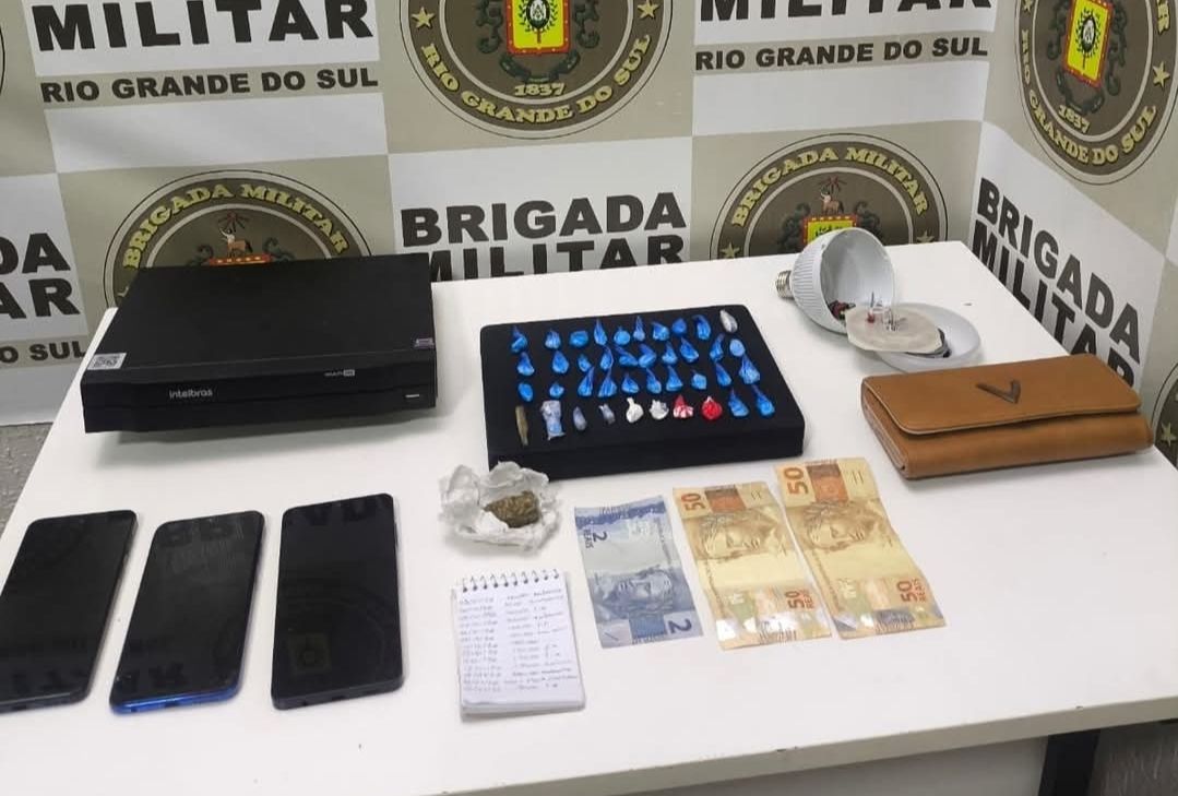 Além das substâncias, os policiais apreenderam um caderno de anotações, três celulares, um aparelho DVR e a lâmpada utilizada para ocultar o material. O casal foi conduzido à Delegacia de Polícia Civil de Marau, onde foi lavrado o auto de prisão em flagrante. Após os procedimentos legais, ambos foram transferidos para o sistema prisional e permanecem à disposição do Poder Judiciário.