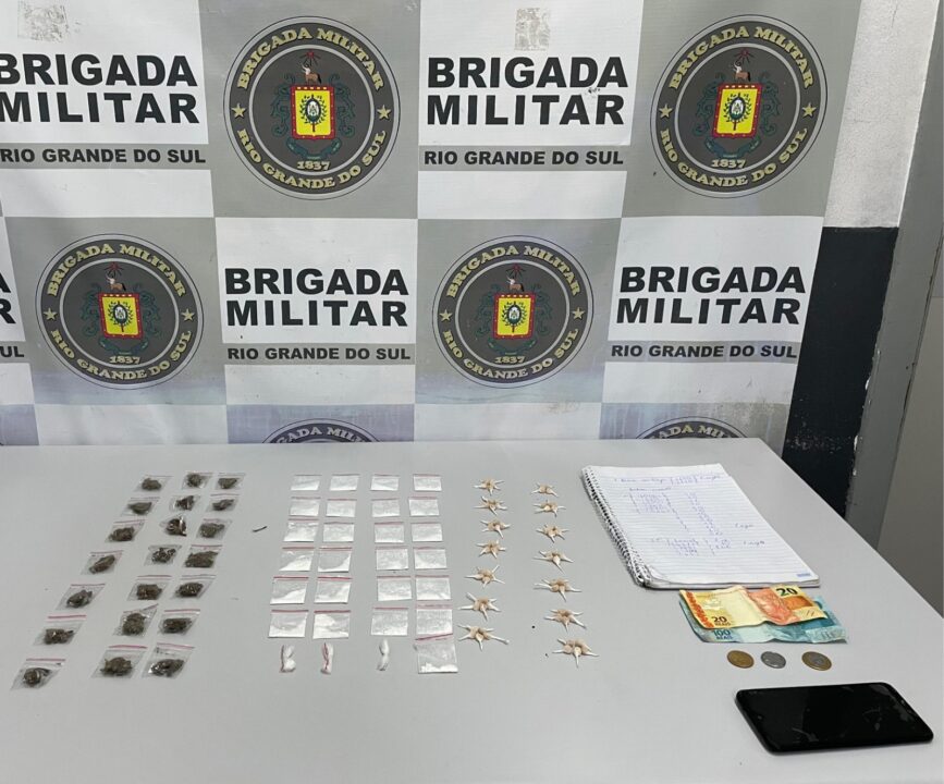 A Brigada Militar, por meio do 12º BPM, prendeu uma jovem de 18 anos e um homem de 20 anos por tráfico de drogas na noite de sexta-feira, 20 de fevereiro, em Caxias do Sul. A abordagem ocorreu no bairro Jardelino Ramos e, durante a identificação, os policiais constataram que o homem já possuía um mandado de prisão em aberto. A ação teve início após a jovem ser flagrada em via pública portando porções de entorpecentes.