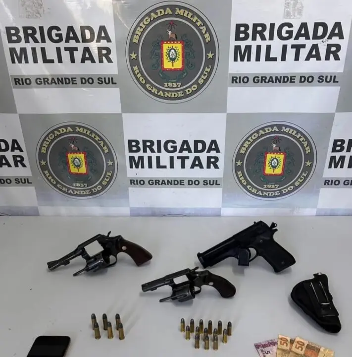 Durante a diligência, foram apreendidos dois revólveres da marca Taurus (calibres .32 e .38), além de 20 munições intactas e um simulacro de pistola. O material apreendido inclui ainda um coldre, um telefone celular e a quantia de R$ 105,00. A ofensiva faz parte da estratégia de policiamento ostensivo para desarticular pontos de venda de drogas e retirar armas de fogo de circulação na Serra Gaúcha.