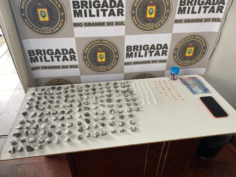A Brigada Militar prendeu um jovem de 19 anos por tráfico de entorpecentes na manhã deste domingo, 15 de fevereiro, no Bairro Industrial, em Farroupilha. A ação ocorreu por volta das 10h30, durante patrulhamento ostensivo em uma região já monitorada pelas autoridades por ser um conhecido ponto de venda de drogas. Ao realizar a abordagem, os policiais encontraram com o indivíduo uma grande quantidade de substâncias ilícitas prontas para a comercialização.