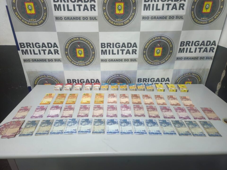 Com base nas características apuradas, o suspeito foi localizado a algumas quadras do local. Durante a abordagem, foram encontrados com ele R$ 293,00 em dinheiro e carteiras de cigarro de diferentes marcas, produtos compatíveis com os itens furtados do comércio.