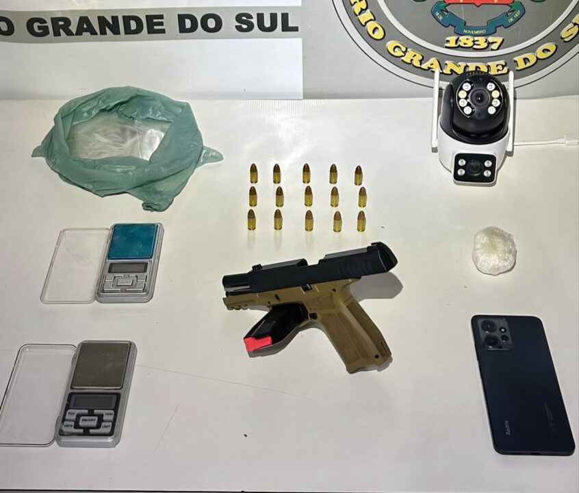 Durante as buscas, foram apreendidos uma pistola calibre 9mm com numeração suprimida, 15 munições, 42,3 gramas de cocaína, além de duas balanças de precisão e materiais utilizados para o fracionamento da droga.