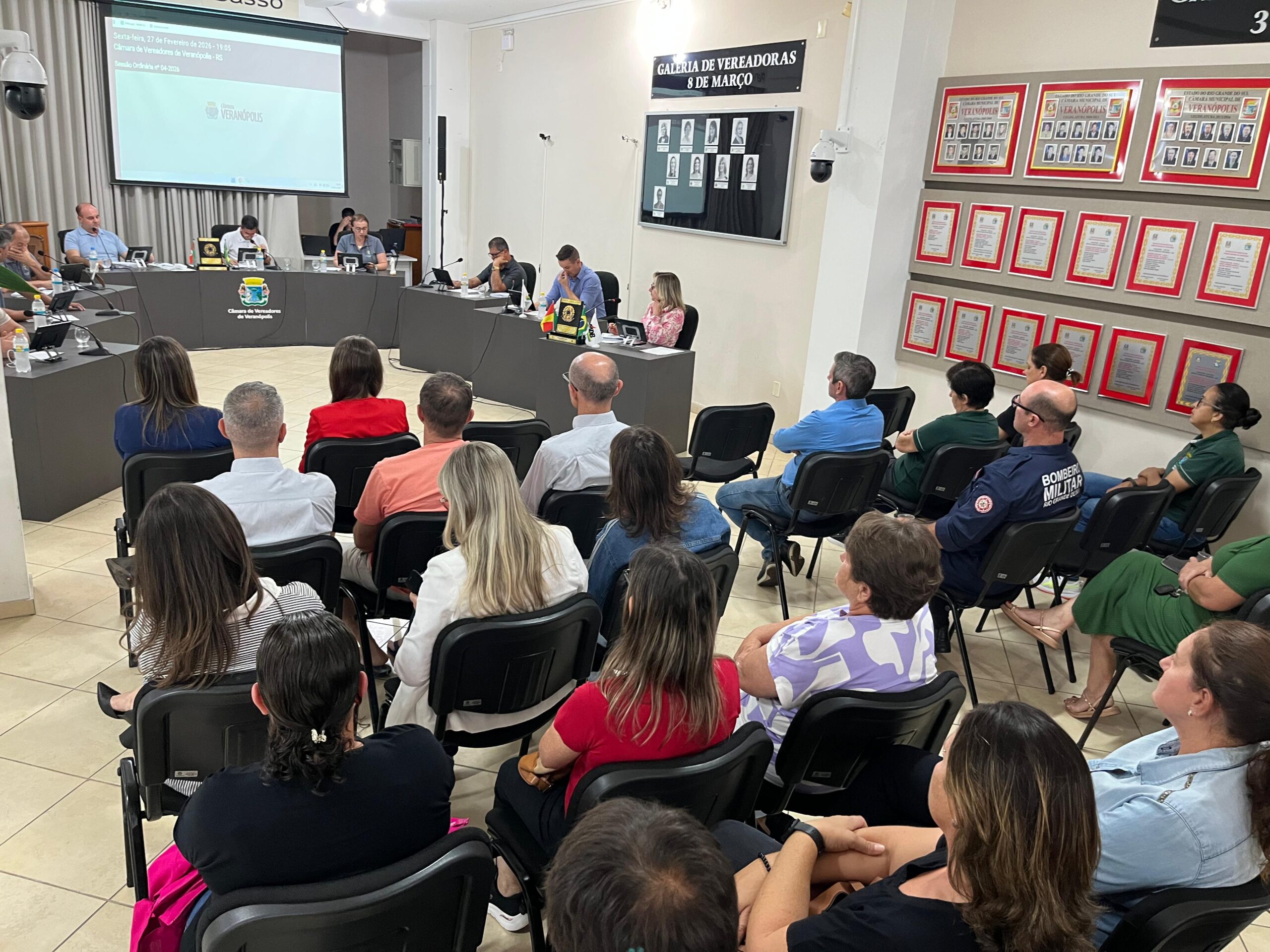 A Câmara de Vereadores de Veranópolis realizou, na sexta-feira, 27 de fevereiro, a sessão ordinária nº 04/2026, marcada pela aprovação unânime de todas as matérias que estiveram na pauta. Ao todo, foram apreciadas e aprovadas 22 proposições, entre indicações, moção e projetos de lei do Executivo Municipal.