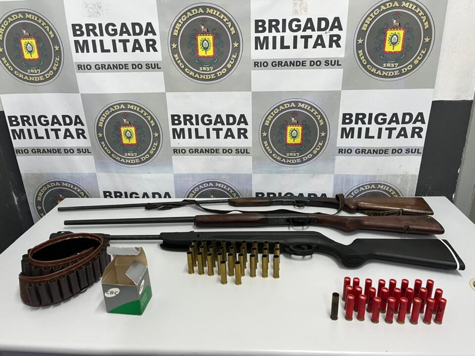 No local, os policiais encontraram e apreenderam três armas: uma espingarda calibre .32, uma espingarda calibre .40 sem numeração e uma espingarda de pressão 5,5mm da marca CBC. Também foram recolhidas 30 munições deflagradas e 24 intactas de calibre .32, além de um cinto cartucheira e um aparelho de som Philips 40W, apontado na denúncia.