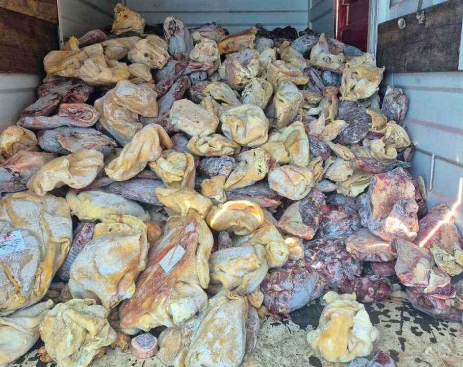 Nos contêineres instalados na área externa e nas dependências internas do mercado, os fiscais encontraram carnes bovinas, suínas, ovinas, frango, miúdos, bacon, hambúrgueres e diferentes tipos de peixe em condições inadequadas. Havia produtos vencidos, sem procedência, com embalagens violadas ou mantidos em temperaturas incompatíveis, além de alimentos com aspecto, cor e odor característicos de deterioração. Também foram constatados equipamentos em mau estado, caixas plásticas sujas e forte odor de esgoto nas proximidades. Na câmara fria do açougue, cortes rotulados como “carne de processamento” apresentavam revalidação de datas, agravando as irregularidades. Parte do material — aproximadamente meia tonelada — foi considerada apta para nutrição animal após inspeção veterinária e destinada ao Zoológico de Sapucaia do Sul.