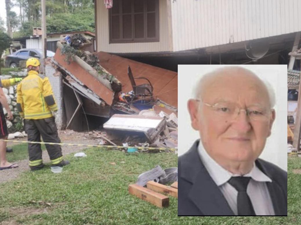 De acordo com as informações, o agricultor Oscar Althaus retirava um trator do porão da residência quando perdeu o controle do veículo e colidiu contra duas vigas que sustentavam a área externa do segundo pavimento da casa.
