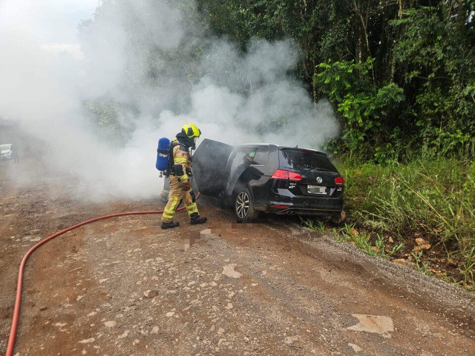 Ao chegar ao local, os bombeiros constataram que se tratava de um Volkswagen Golf Variant, com placas de Bento Gonçalves/RS, conduzido por uma mulher. O automóvel apresentava a parte frontal, o compartimento do motor e o interior completamente destruídos pelas chamas.