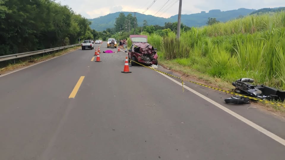 Motociclista morre em grave acidente entre carro e moto na ERS-239, em Rolante