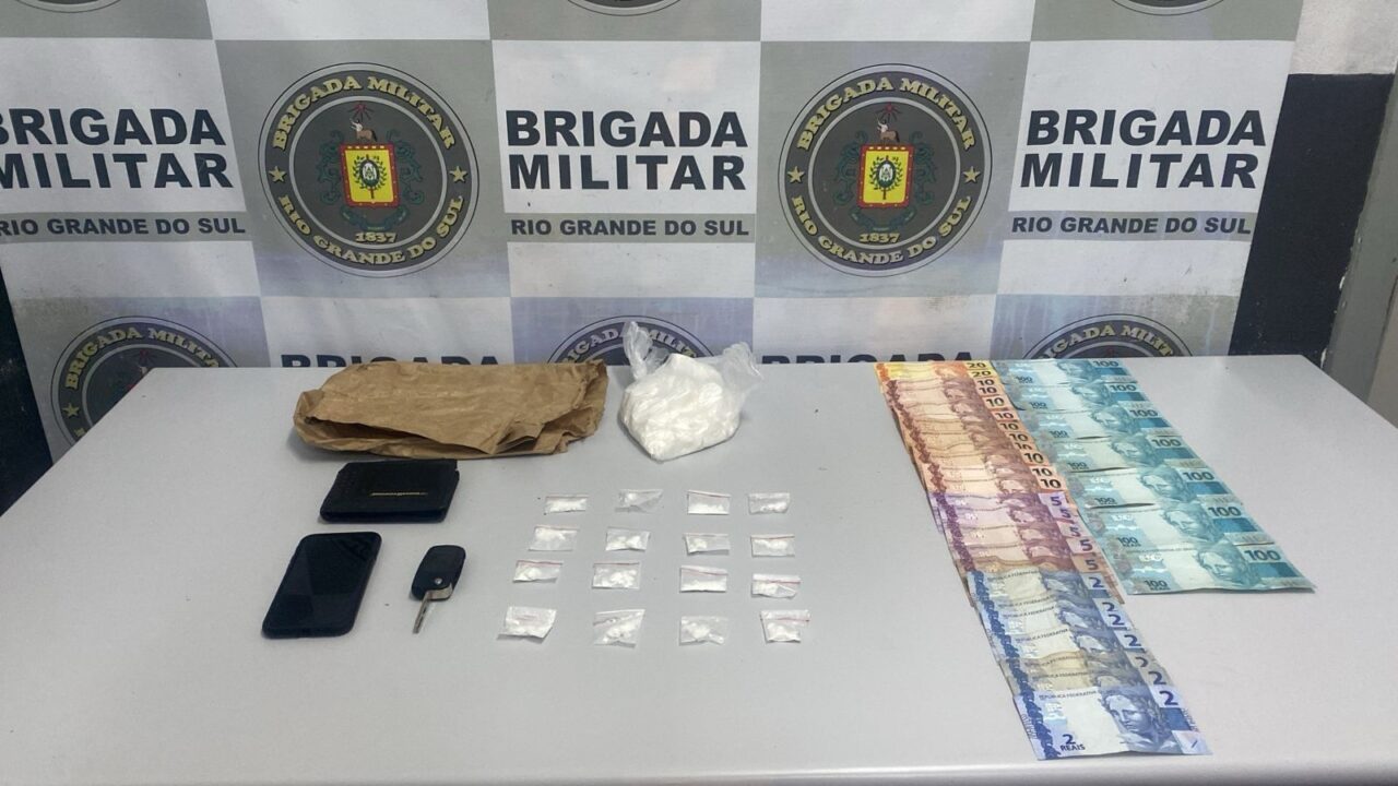 Durante a revista no automóvel, os policiais encontraram 17 porções de cocaína, que somaram aproximadamente 315,4 gramas da substância. Além do entorpecente, também foram apreendidos R$ 879,00 em dinheiro, valor que estaria relacionado à atividade criminosa, segundo a polícia.