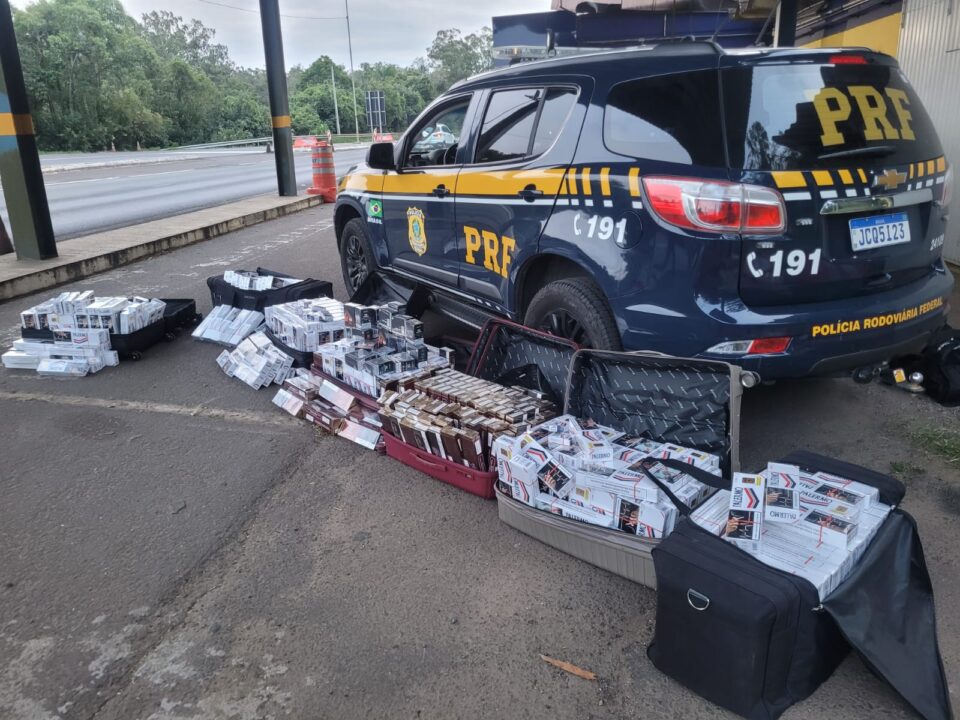 Na noite de segunda-feira, 23 de fevereiro, a Polícia Rodoviária Federal (PRF) prendeu duas mulheres transportando uma carga de 6.530 maços de cigarros paraguaios na BR-386, em Montenegro. Durante uma operação de combate ao crime, os agentes abordaram um ônibus que fazia a linha de Palmitinho a Porto Alegre e localizaram a mercadoria ilícita distribuída em sete malas e duas caixas no bagageiro do veículo. Além dos cigarros, foram apreendidos 20 cigarros eletrônicos e cinco ampolas para canetas emagrecedoras.
