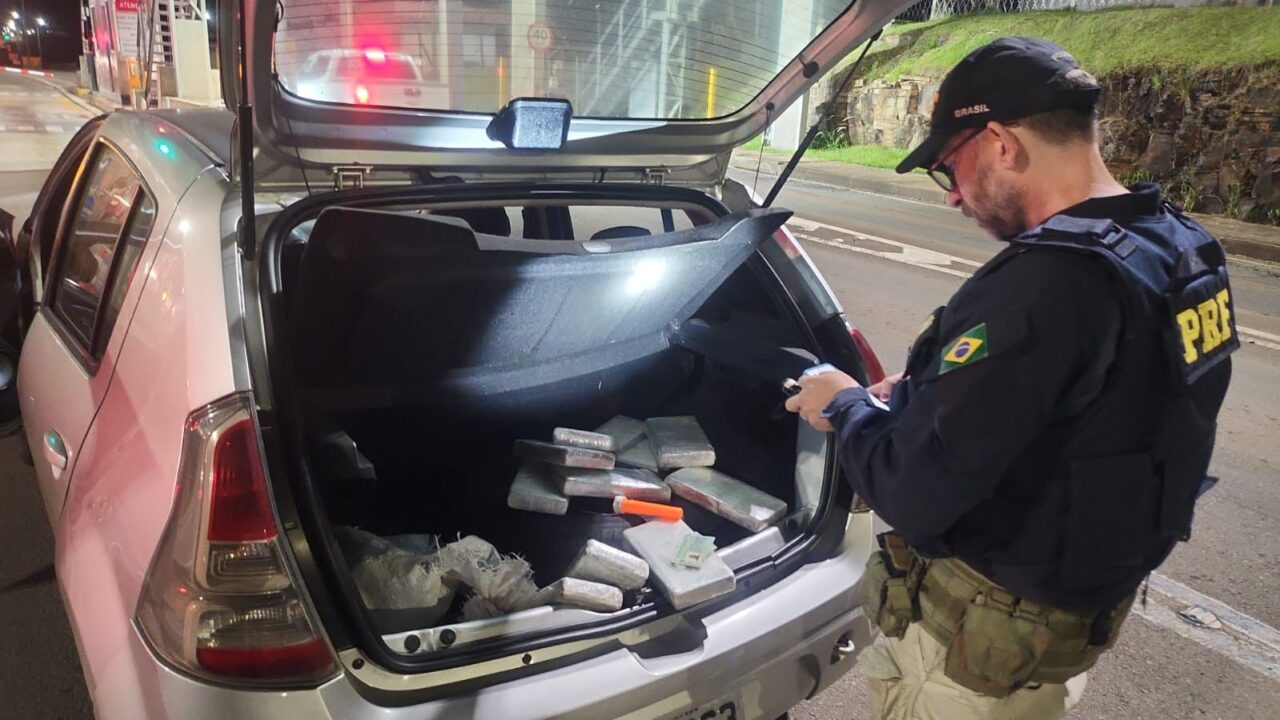 A ação ocorreu durante operação de combate à criminalidade, quando os policiais abordaram um Renault Sandero com placas de Foz do Iguaçu/PR. Ao realizarem a vistoria no veículo, os agentes localizaram a droga escondida no porta-malas.