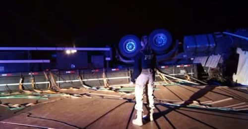 O tombamento de uma carreta carregada com chapas de compensado causou a interrupção total do tráfego na BR-285, no quilômetro 162, entre Lagoa Vermelha e Muitos Capões. O acidente ocorreu na noite deste domingo, 22 de fevereiro, deixando o veículo atravessado na rodovia e a carga espalhada sobre o pavimento. Equipes do Corpo de Bombeiros de Lagoa Vermelha e de Muitos Capões foram acionadas para realizar o atendimento e a limpeza da via.