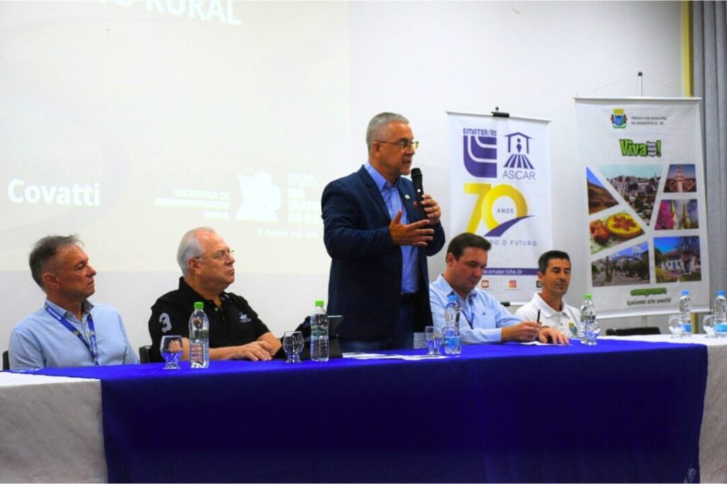 Durante o evento, o secretário estadual de Desenvolvimento Rural, Vilson Covatti, destacou que a agricultura familiar é a base das políticas públicas do setor e peça fundamental para a segurança alimentar, reforçando a importância dos programas de incentivo e do apoio direto aos produtores rurais.