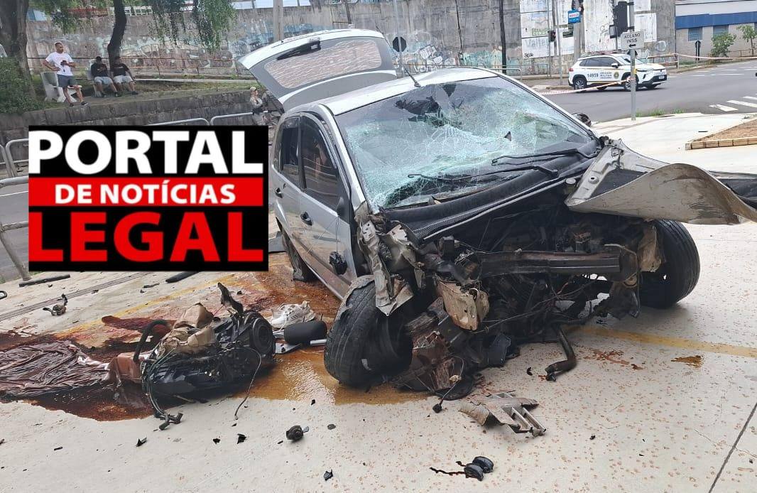 Violência do impacto impressiona: carro bate em poste e tem motor arrancado em grave acidente no bairro Pio X