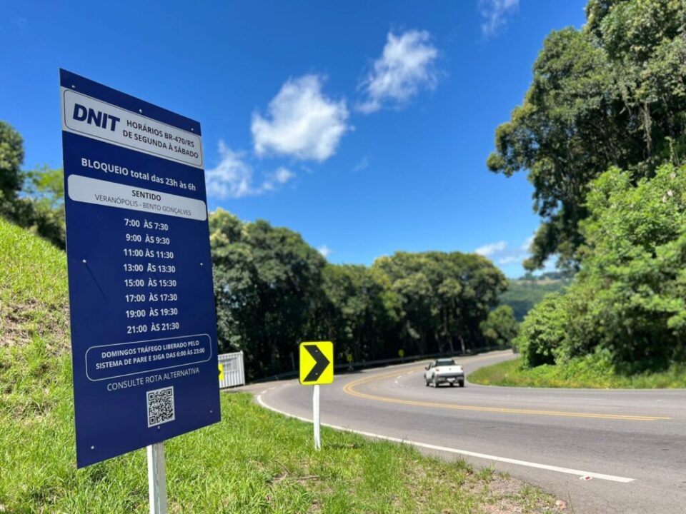 O Departamento Nacional de Infraestrutura de Transportes (DNIT) informou que, a partir de segunda-feira, 5 de janeiro, será retomado o sistema de comboio na BR-470, no trecho da Serra das Antas, entre os municípios de Veranópolis e Bento Gonçalves.