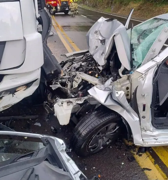 Colisão entre carro e caminhão deixa homem ferido na BR-470 em Garibaldi