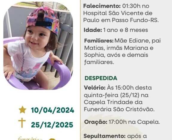 Leia mais »Criança de um ano e oito meses não resistiu após ser socorrida em hospital da região A pequena Cecília Schultz…