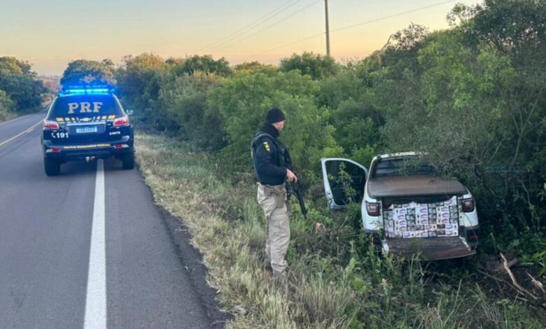 Condutor abandonou o veículo e escapou para área de mata após desobedecer ordem de parada na BR-287 Uma grande carga…
