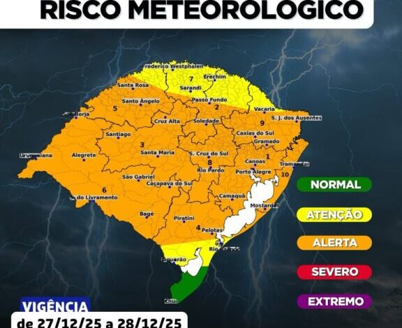 Frente fria deve provocar chuva intensa, granizo e rajadas fortes em diversas regiões do Estado entre sábado e domingo A…