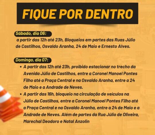 A Prefeitura de Veranópolis informa que haverá mudanças significativas no trânsito neste sábado e domingo, devido à programação especial de…