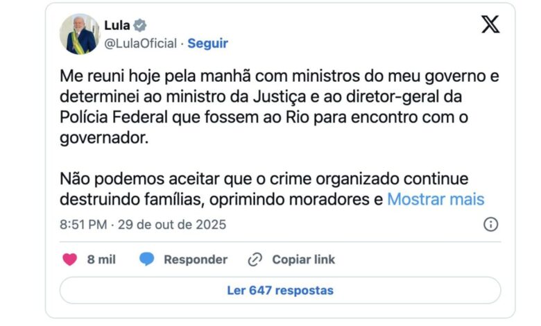 Diante da violenta megaoperação policial no Rio de Janeiro, que resultou em mais de uma centena de mortes, o presidente…