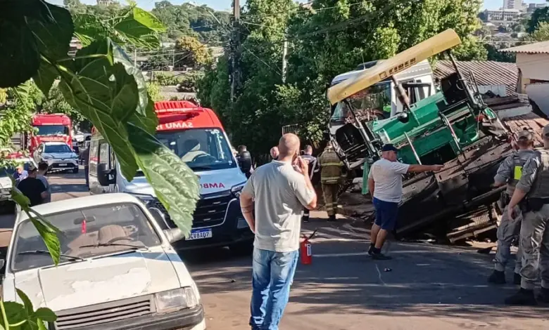 Veículo perdeu os freios e colidiu diretamente contra a residência no bairro Planalto, mas ninguém ficou ferido gravemente. Um caminhão…