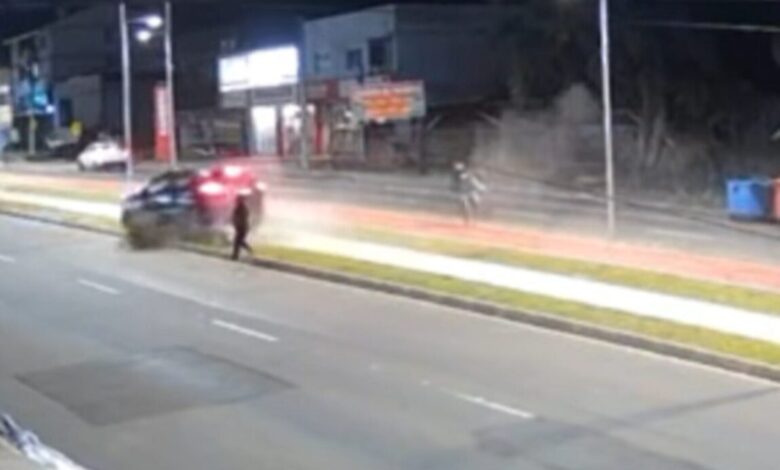 Imagens que circulam nas redes sociais mostram o momento em que uma caminhonete Ford Edge sai da pista e avança…