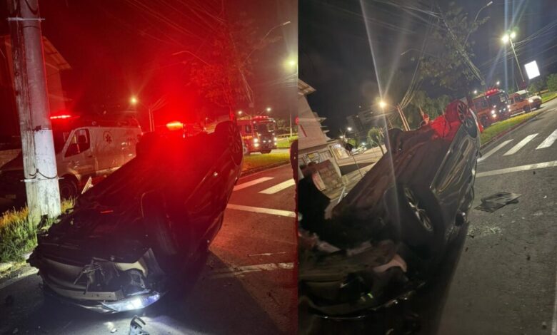 Um carro colidiu com um poste e capotou durante a madrugada desta sexta-feira, 12 de dezembro, no bairro Universitário, em…