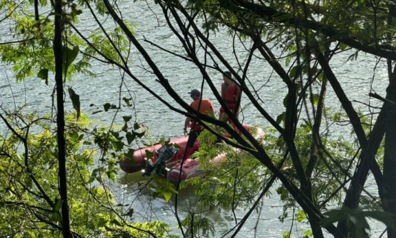Uma caminhonete Volkswagen Amarok foi localizada a cerca de 10 metros de profundidade no rio Goio-Ên, na divisa entre o…