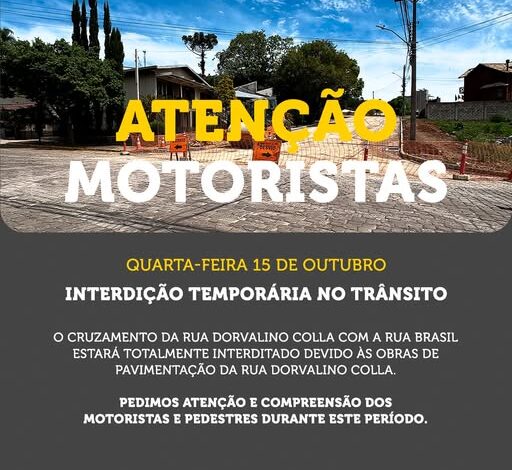 Leia mais »Atenção, motoristas e pedestres de Nova Prata! Nesta quarta-feira, 15 de outubro, o cruzamento da Rua Dorvalino Colla com a…