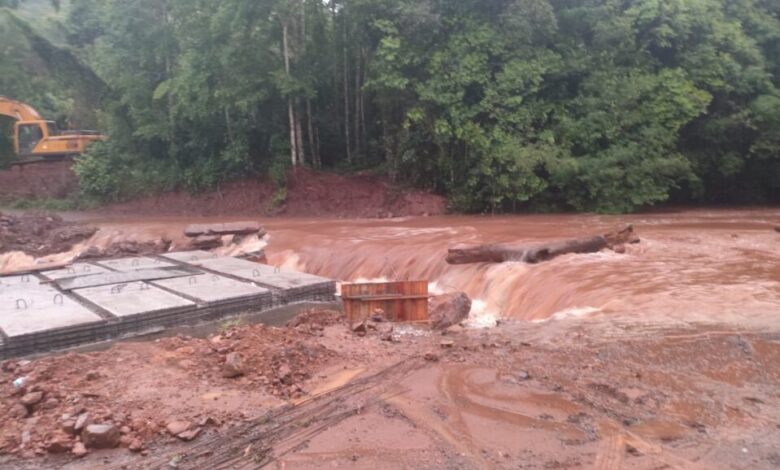 Ponte em construção permanece intacta; moradores das comunidades Capela Nossa Senhora das Graças e Monte Bérico devem usar vias alternativas…