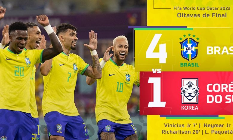 Com gols de Vinicius Jr, Neymar Jr, Richarlison e Paquetá, a Seleção Brasileira venceu a Coreia do Sul por 4…