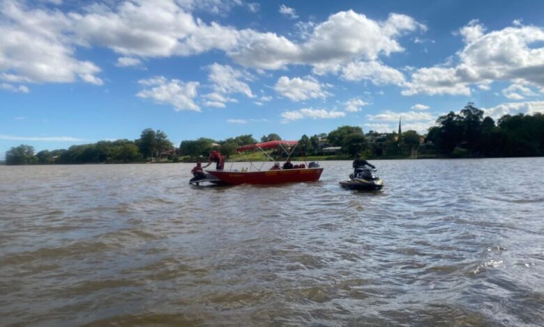 Equipes da Brigada Militar e do Corpo de Bombeiros atuam nas buscas por um jovem desaparecido na Barragem de Ernestina…