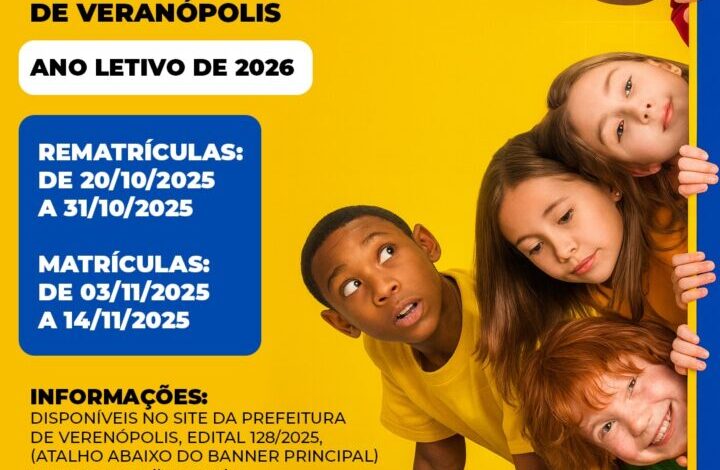 Atenção, famílias! Está chegando o período de matrículas e rematrículas para as escolas da rede municipal de ensino. – Rematrículas: de 20 a 31 de…